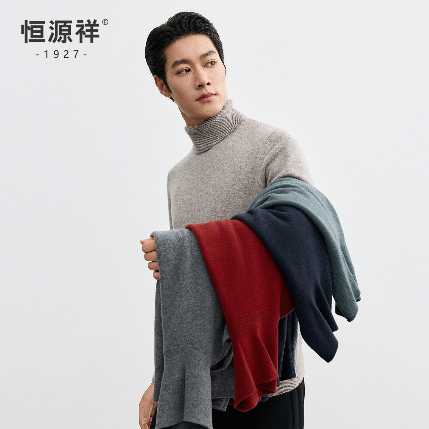 Hengyuanxiang men's wool sweater solid color base sweater 100% sheep wool turtleneck pullover casual sweater