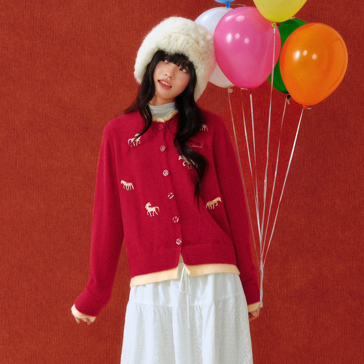 PSO Brand women's clothing [Year of the Horse limited edition] fake two pieces of red sweater cardigan jacket winter in the year of the birth