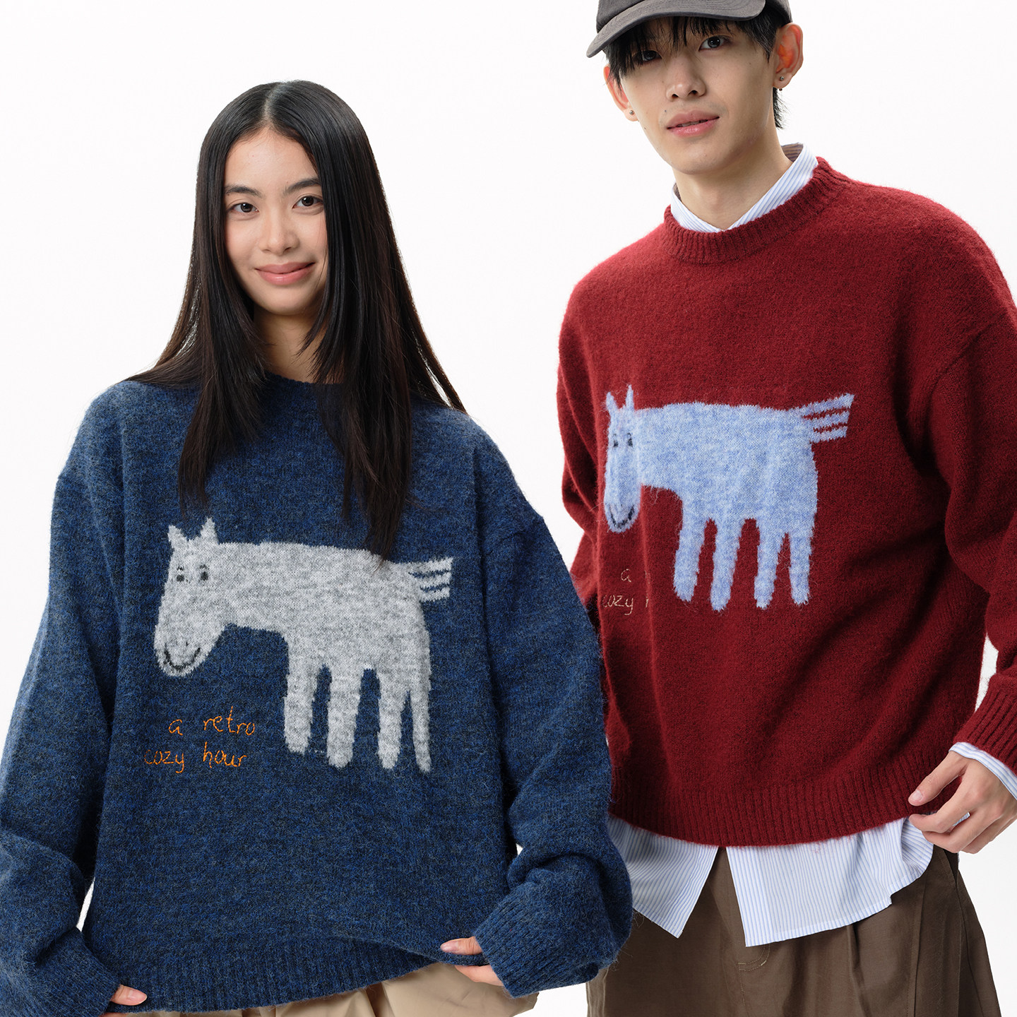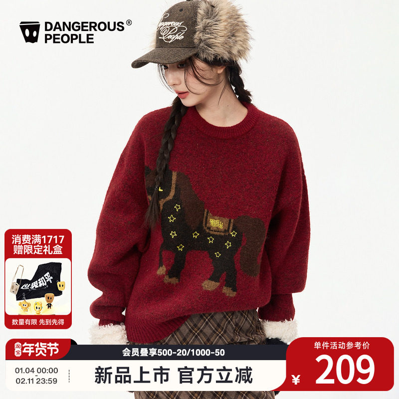Dangerouspeople Xue Zhiqian DSP Simple Pony Embroidered Crew Neck Pullover Warm Knit Sweater