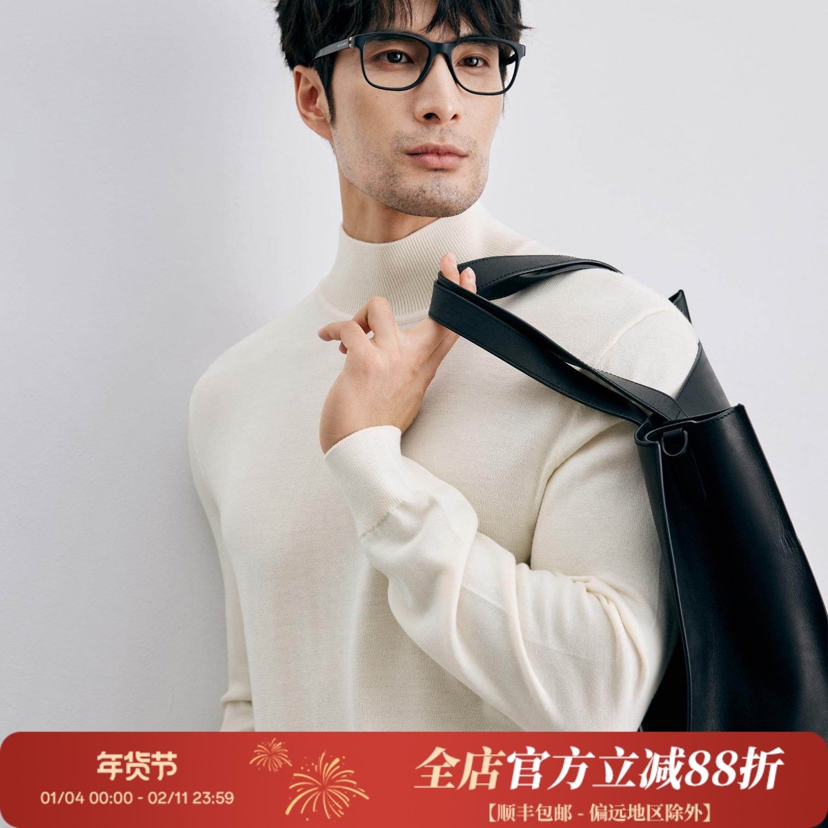 Mr. Bu's light luxury long-sleeved wool T men's thin sweater base wool sweater can be machine washed in winter