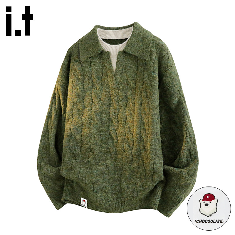 it : CHOCOOLATE vintage polo collar knit sweater men's autumn vacation two pieces of heavy warm casual top