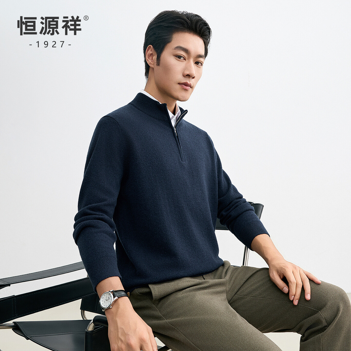[100% sheep wool] Hengyuanxiang wool sweater men's autumn and winter new zipper semi-turtleneck casual long sleeve sweater for men