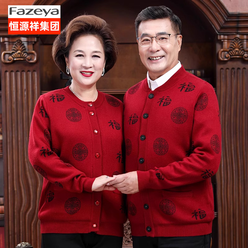 Hengyuanxiang Group color sheep middle-aged and elderly sweaters, male grandparents, autumn and winter cardigans, old age natal year wool sweaters