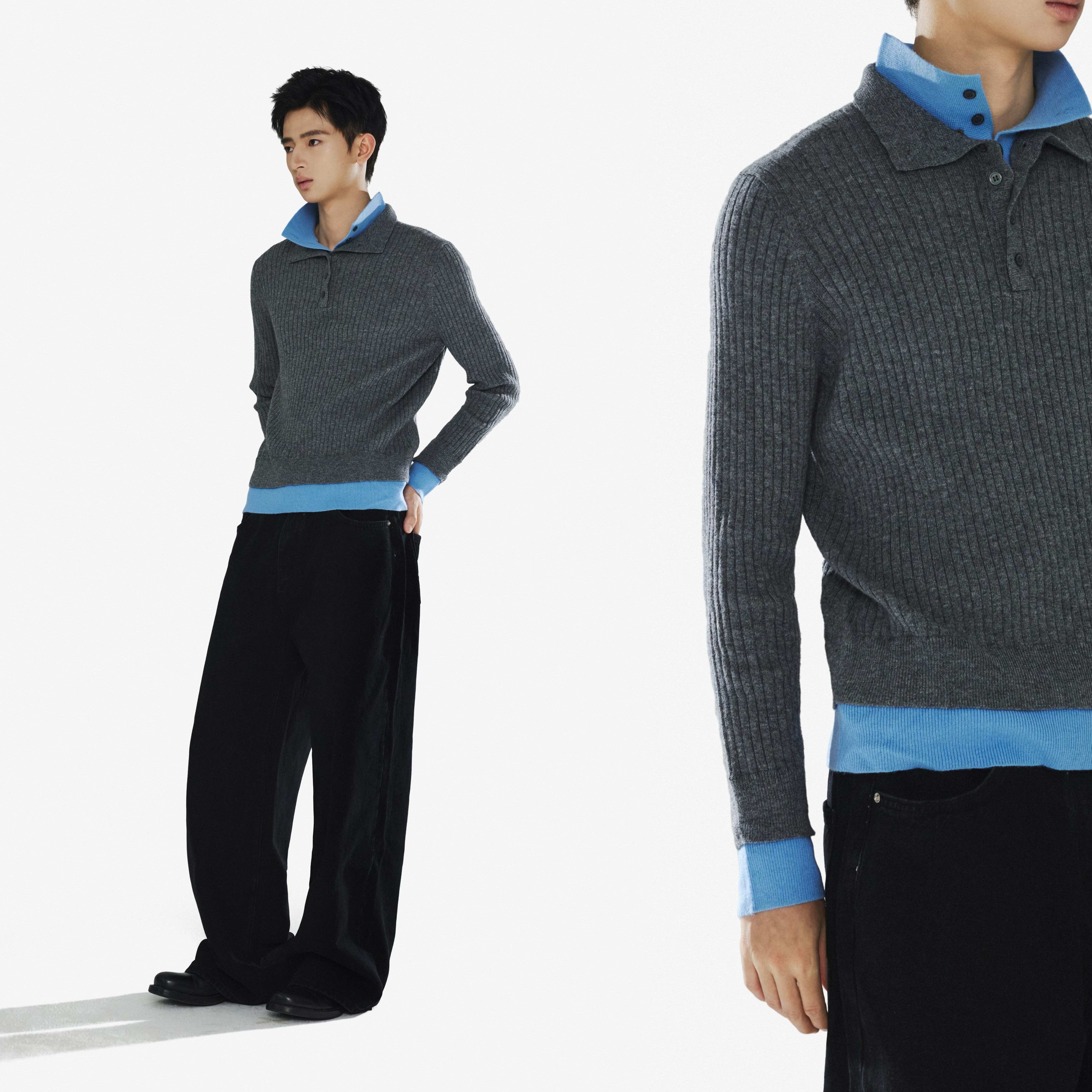it izzue official high-end lapel sweater men's autumn new loose casual polo shirt long sleeve men's Y