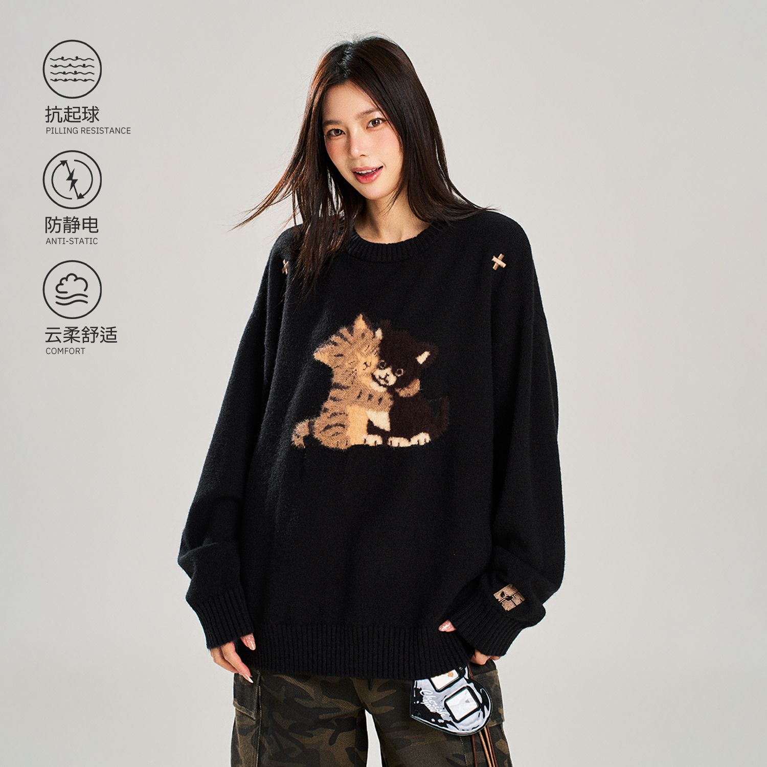 NSTNEW START sprouting plan embraces cat plush jacquard lazy feel loose and versatile sweater knit top