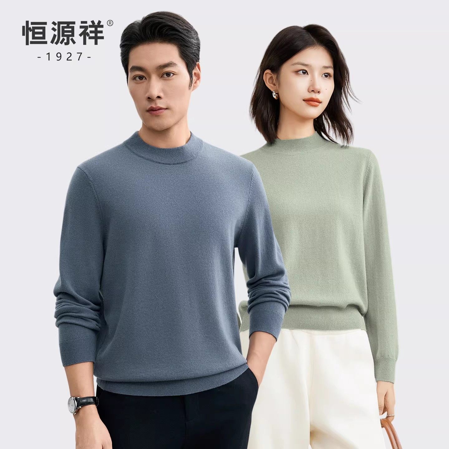 【100% wool】Hengyuanxiang wool sweater men's autumn and winter couple fashion casual solid color men's and women's sweaters