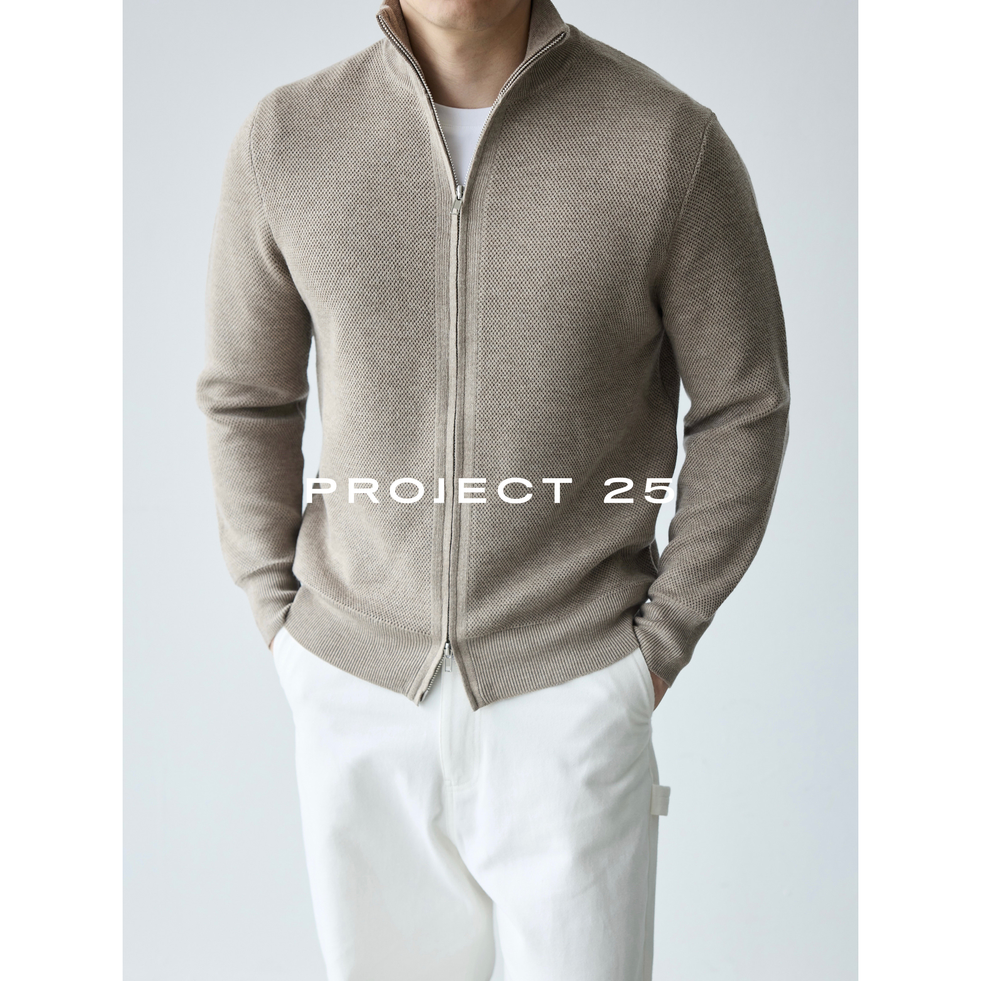 PROJECT 25 Wool mulberry silk blend pique knit stand-up collar zipper cardigan commuter outerwear