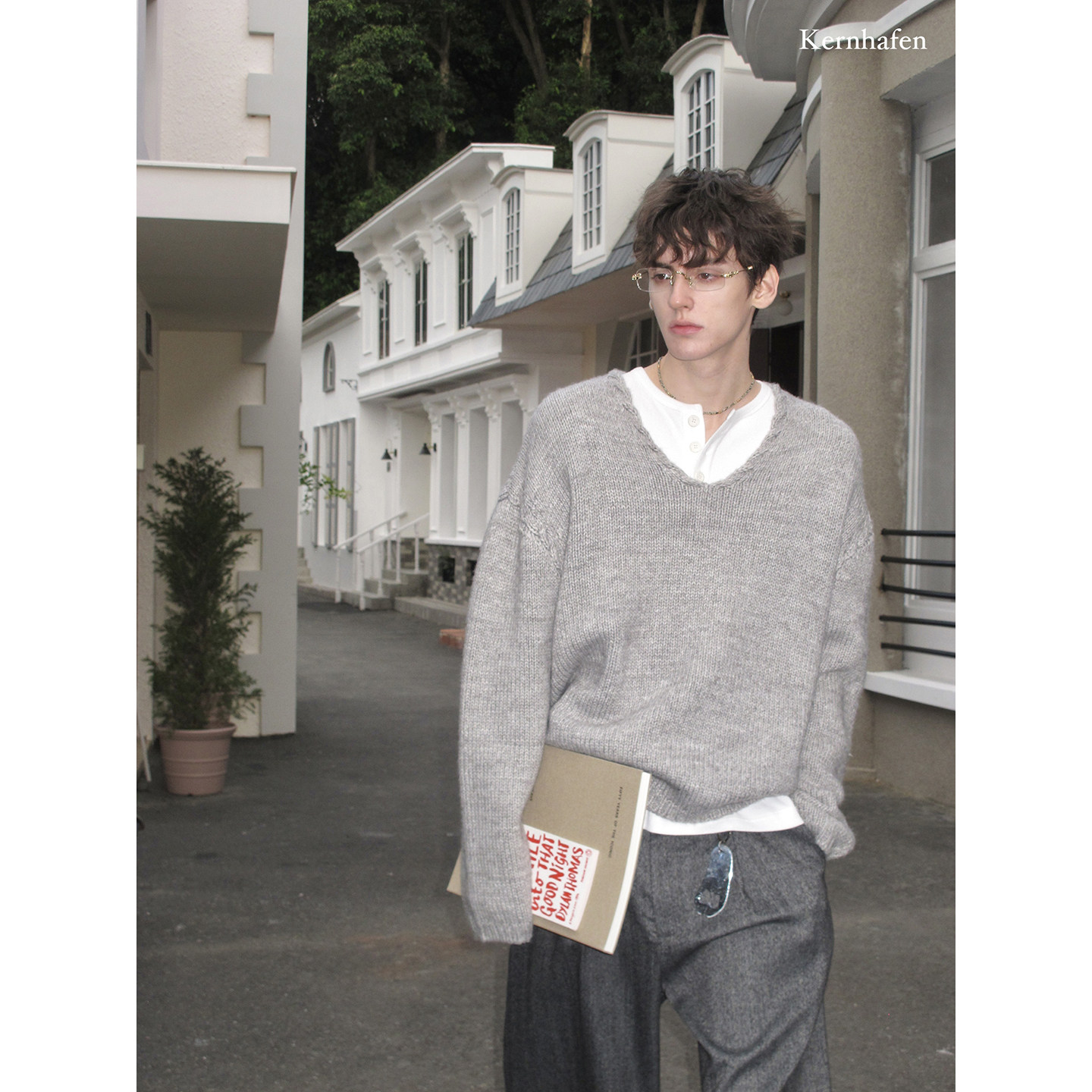 "It is recommended that boys watch the appearance of win everyone" soft and loose V-neck sweater | kernhafen