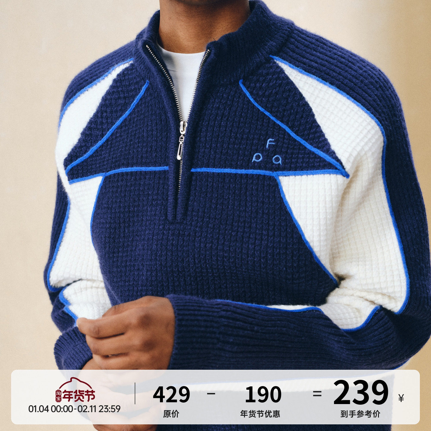 FPA Half Zipper Sports Outdoor Contrast Patchwork Sweater Spring and Autumn Pullover Vintage Couple Outfit Premium Knitwear