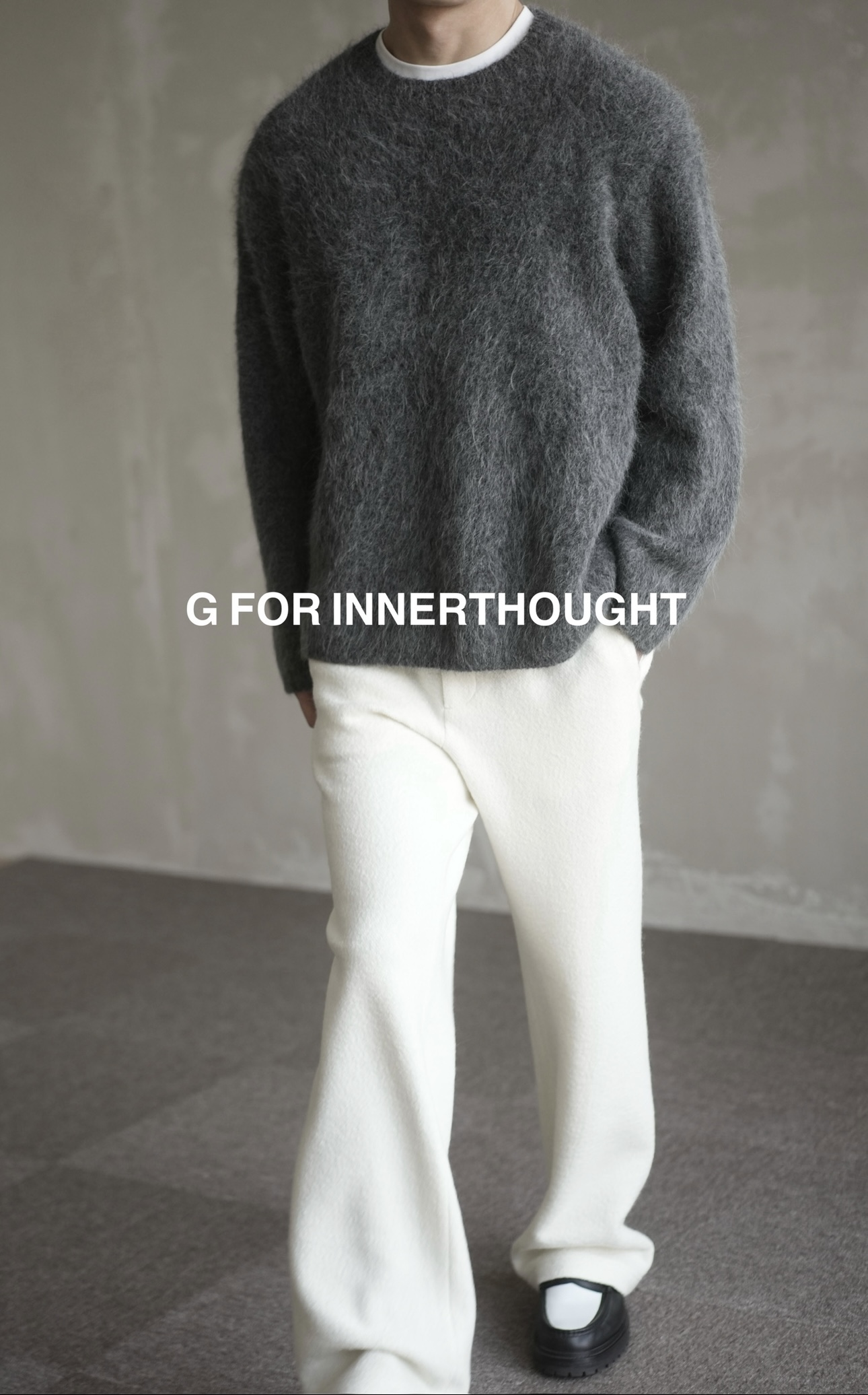 G FOR INNERTHOUGHT|Luxury baby alpaca wool blend crew neck sweater for men