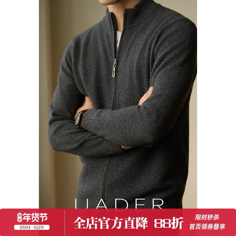 UADER [100% sheep wool] business casual sweater men's fall and winter half-height zip knit cardigan jacket