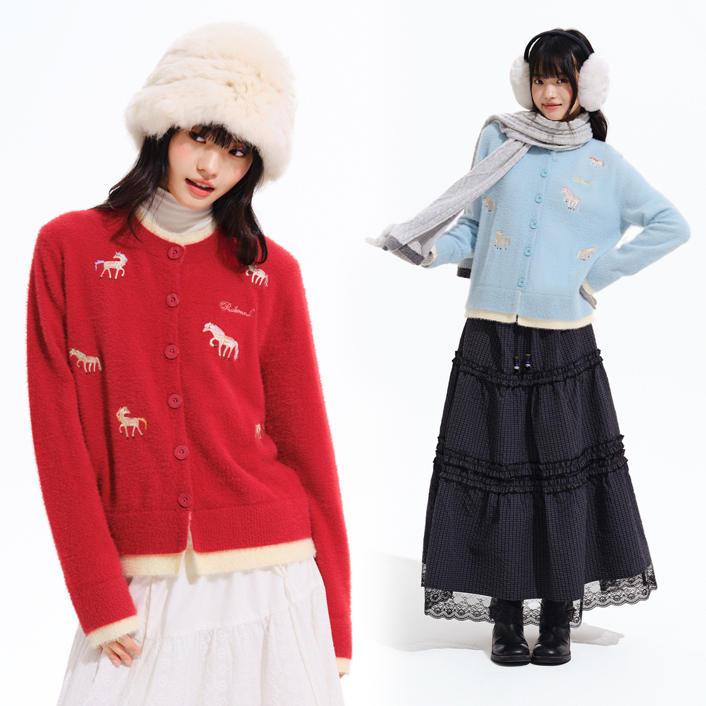 PSO Brand Women's [Year of the Horse Limited Edition] Imitation mink fur embroidered cardigan sweater New Year's red knit