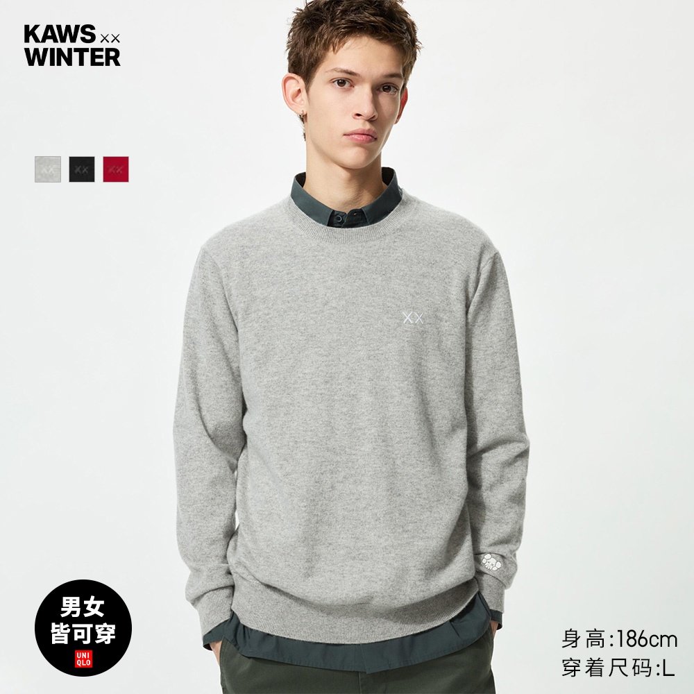 Uniqlo Men's Women's KAWS Cashmere Crew Neck Knitwear Long Sleeve Sweater Sweater 25 Fall/Winter New 485272