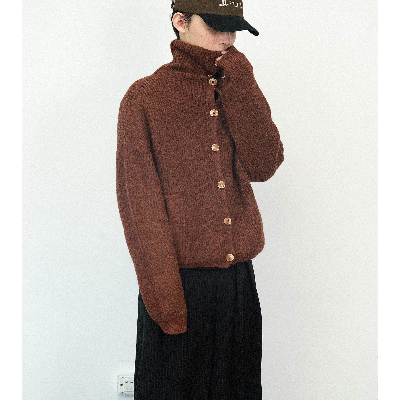 NOT UGLY 24AW mottled turtleneck closed wool vintage multi-button cropped knit sweater cardigan