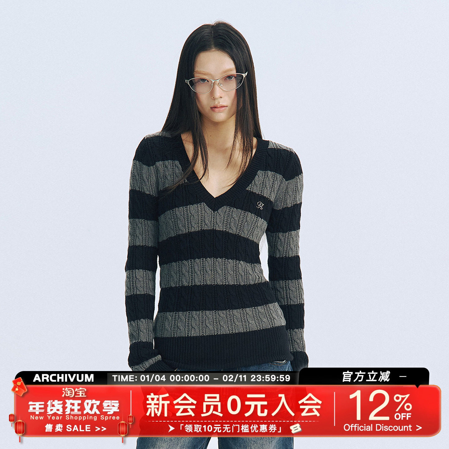 Archivum versatile V-neck twist striped lazy sweater women's autumn loose couple knit top trend