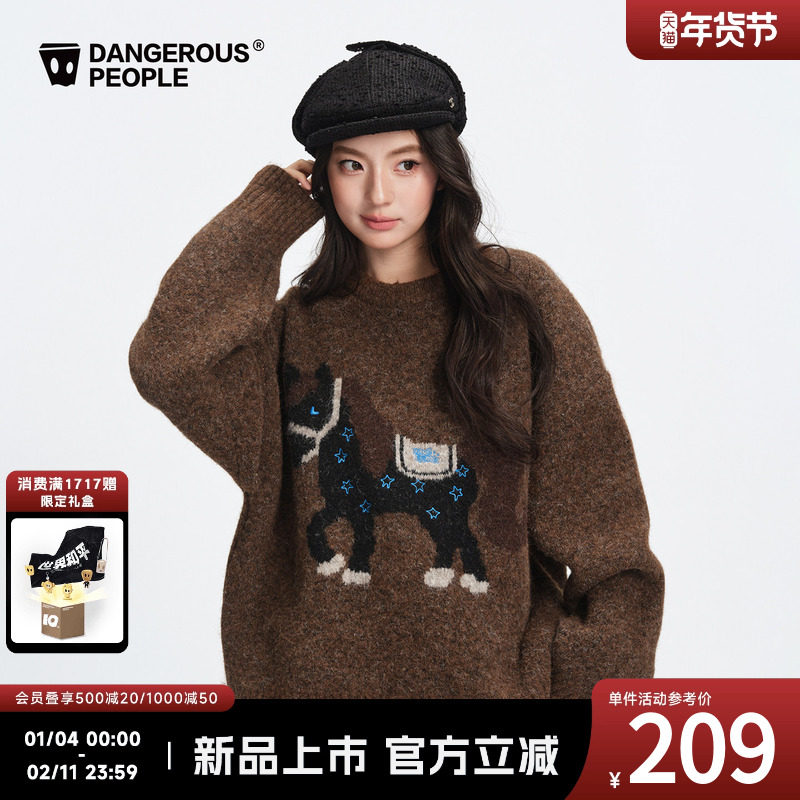 Dangerouspeople Xue Zhiqian dsp new pony knitted sweater winter loose lazy couple red sweater