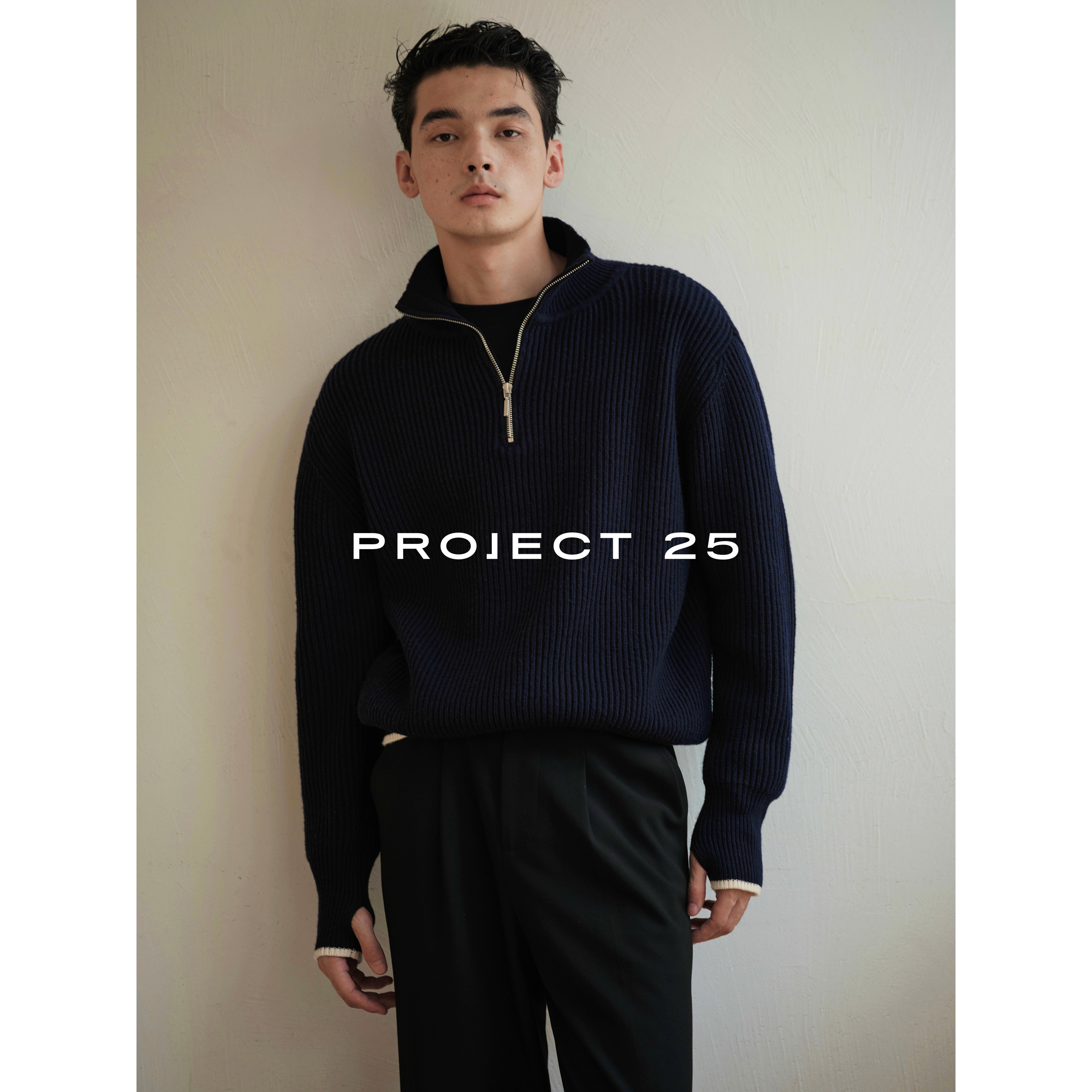PROJECT 25 Australian wool-blend heavy half-zip stand-up collar knit contrasting casual pullover sweater