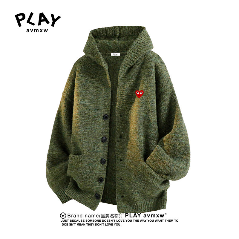 PLAY AVMXW Official Hooded Cardigan Sweater Fall & Winter New Couple Casual Stylish Knitwear