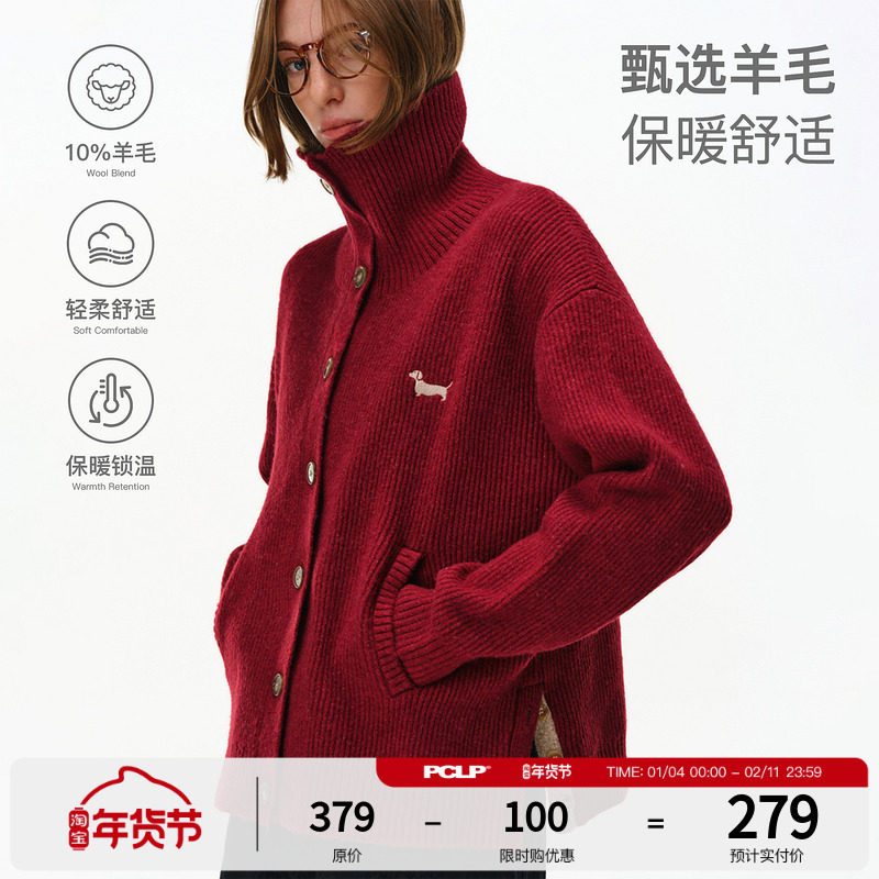 PCLP "wool souffle" embroidered small high-label turtleneck sweater winter national trend brand hem slit cardigan jacket