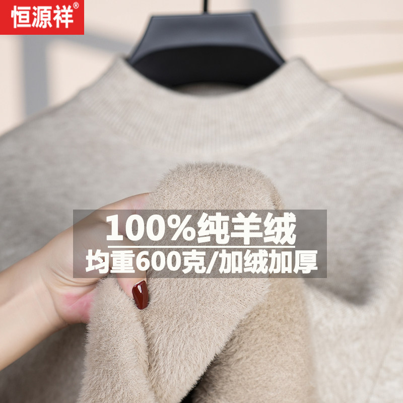 Hengyuanxiang's new 100% pure cashmere sweater plush extra thickened integrated velvet semi-turtleneck bottom wool sweater sweater for men