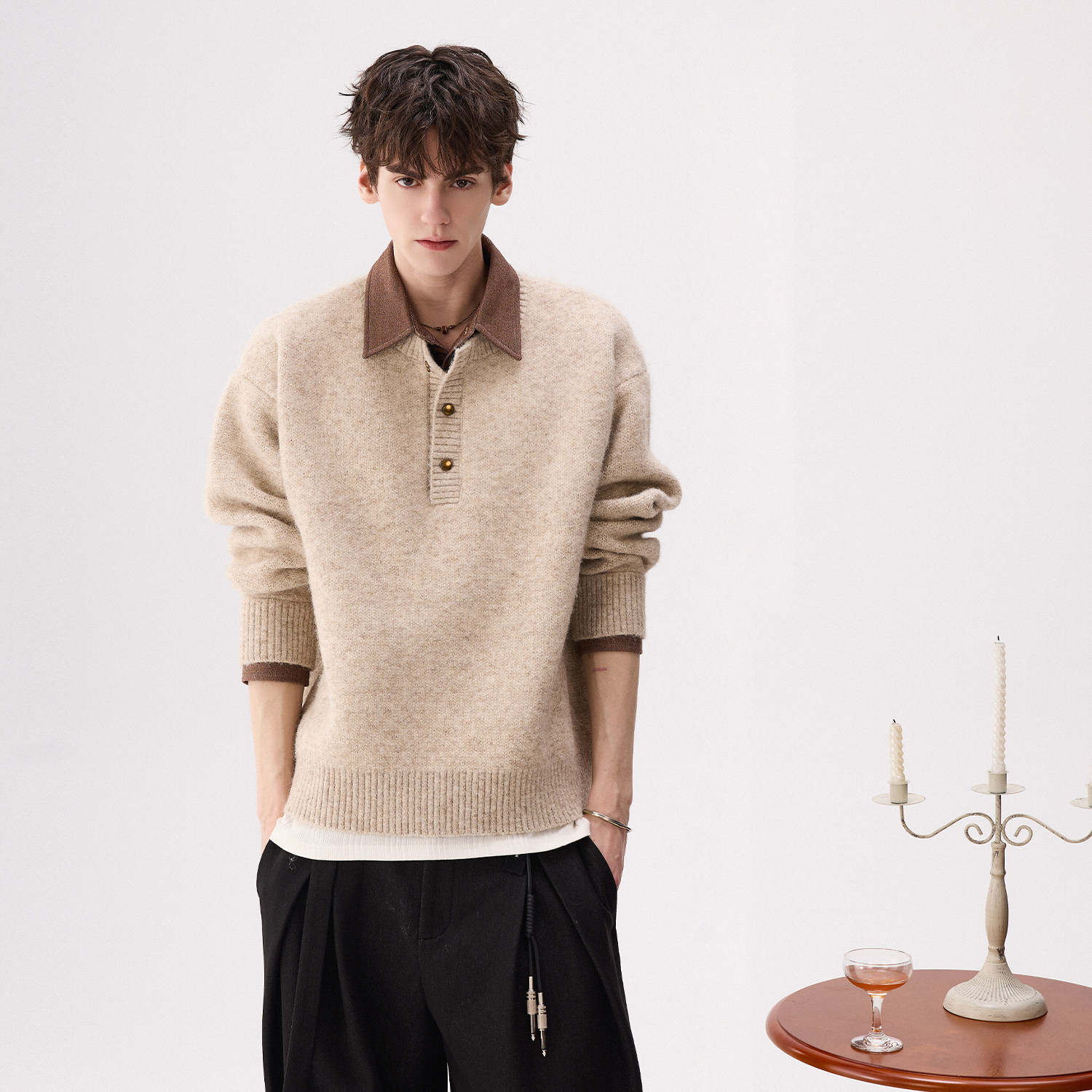 CHICERRO Sicilian Men's Design Sense Art Fake Two Fake Denim Shirt Collar Sweater Men's Inner Top
