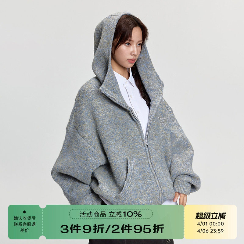 RAPPEYE Versatile Preppy Loose Knit Hooded Cardigan Top Faux Mohair Sweater Jacket Women