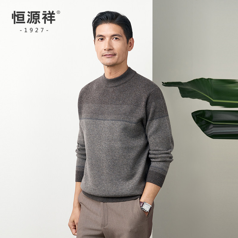 【100% wool】Hengyuanxiang wool sweater men's autumn and winter new pullover semi-turtleneck youth casual base shirt