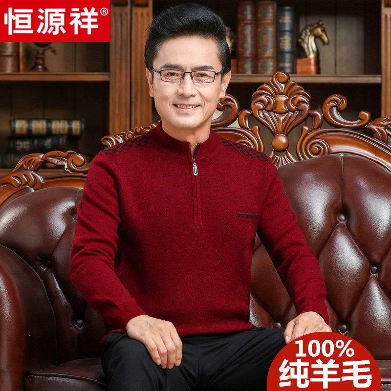 Hengyuanxiang wool sweater, male middle-aged and elderly, 26 years of the horse, red natal year clothes, thickened warm sweater, dad clothes