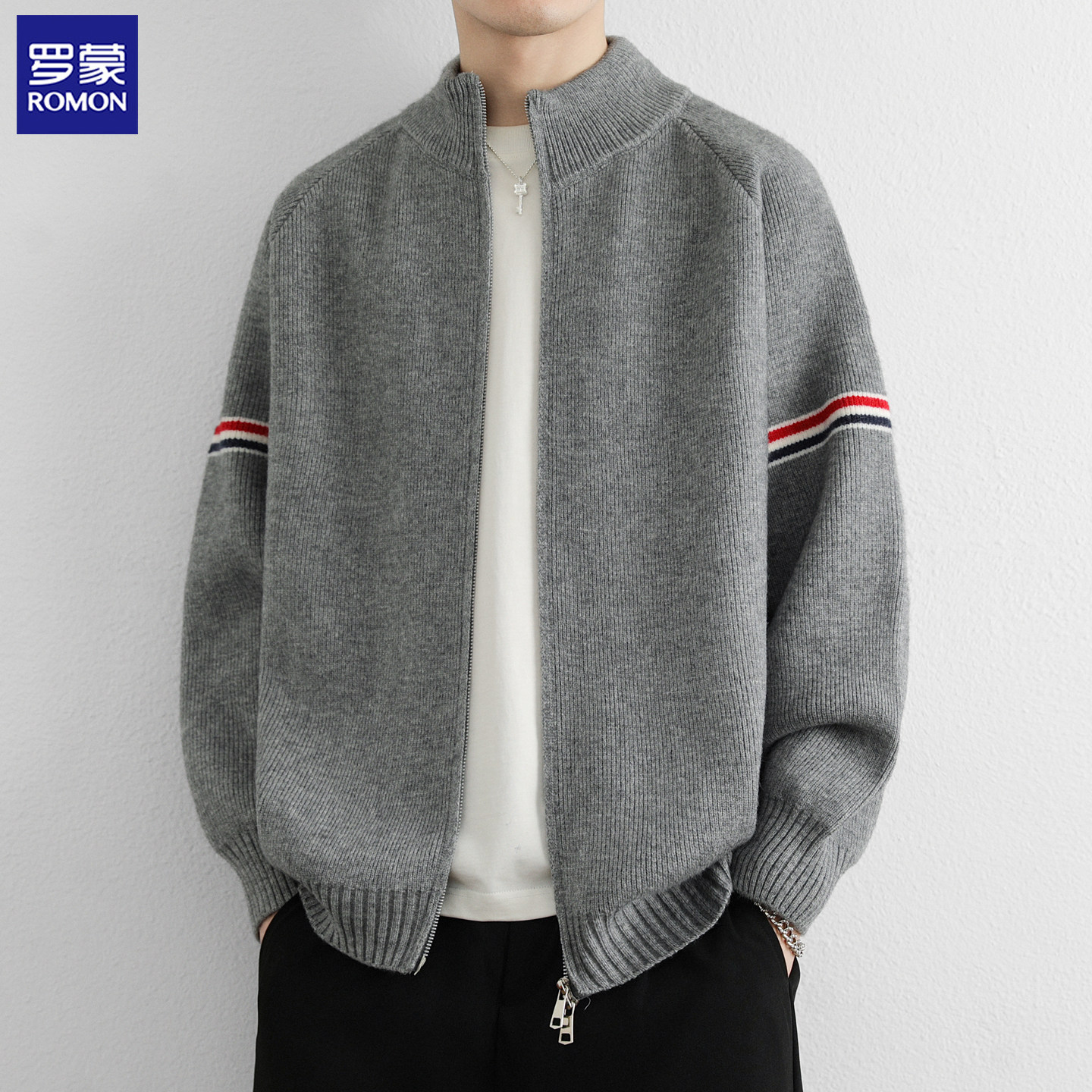 Romon semi-turtleneck sweater cardigan zipper jacket men's spring, autumn and winter American trendy brand loose casual knitted liner