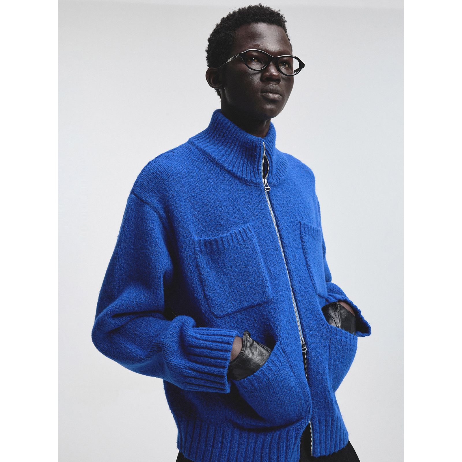 NANS Heavy Thick-Count Alpaca Wool Blend Ribbed Turtleneck Multi-Pocket Knitted Cardigan NS9K06