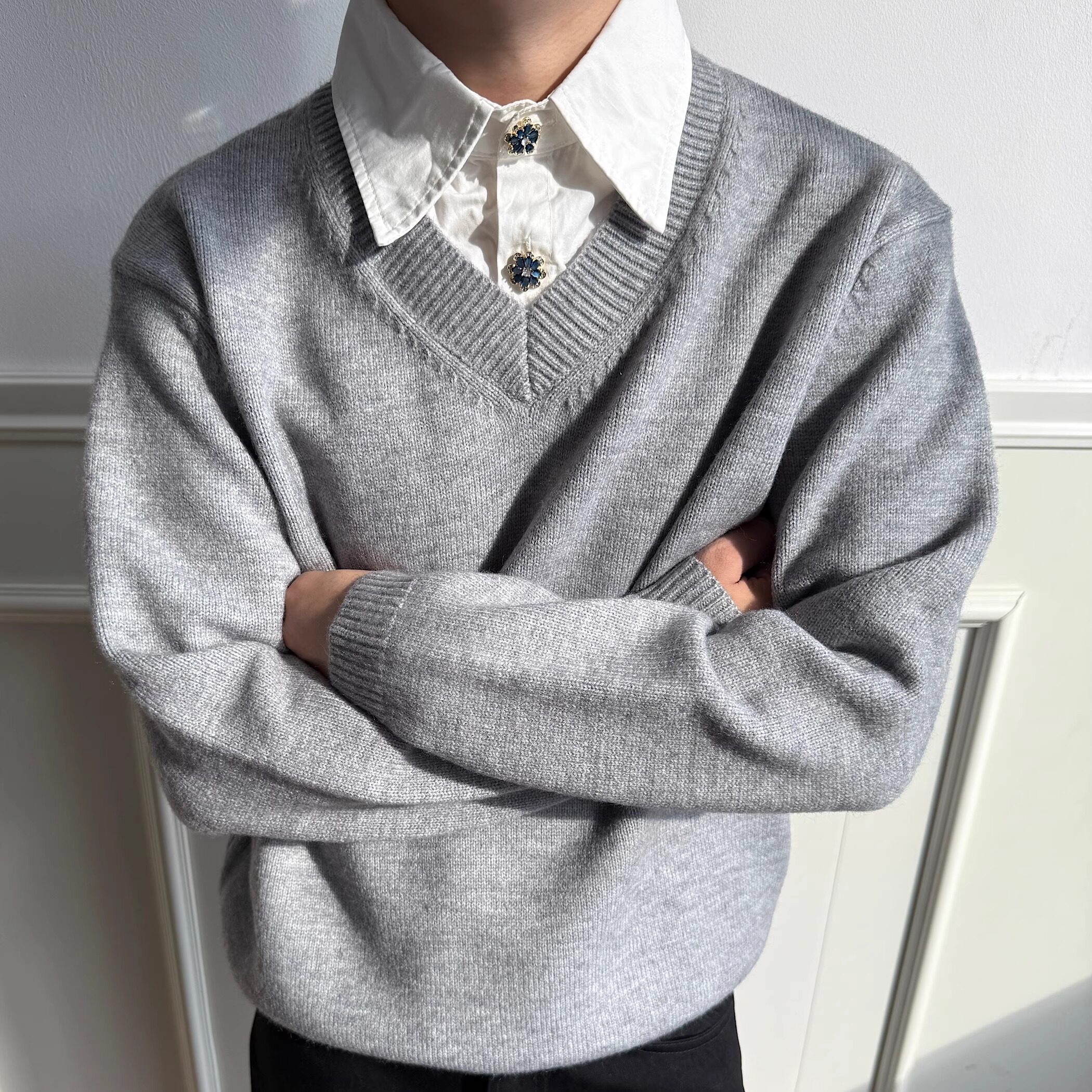 LostMyself High Intelligence V Collar Fake Two Polo Atmosphere High-end Old Money Knitted Sweater Couple Style