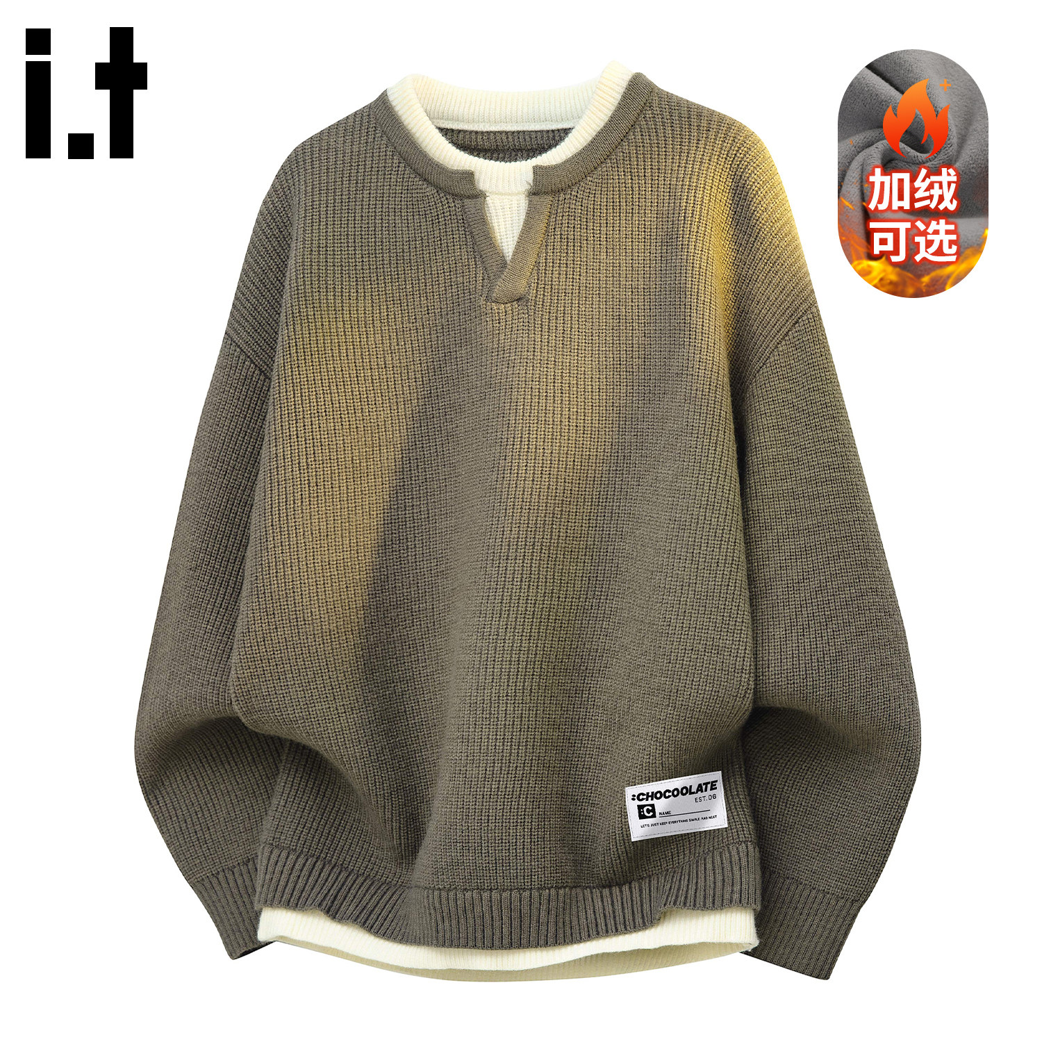 it : CHOCOOLATE inner crew neck knit top men's fall and winter thickened design sense fake two sweaters