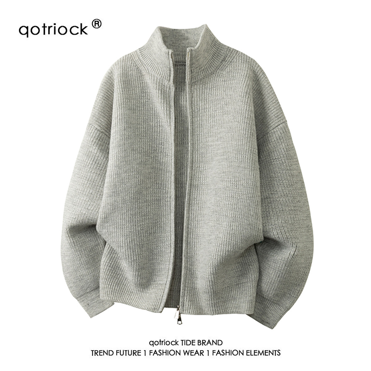 American double zipper sweater cardigan for men and women in autumn and winter heavy loose and versatile lazy simple knitted jacket top