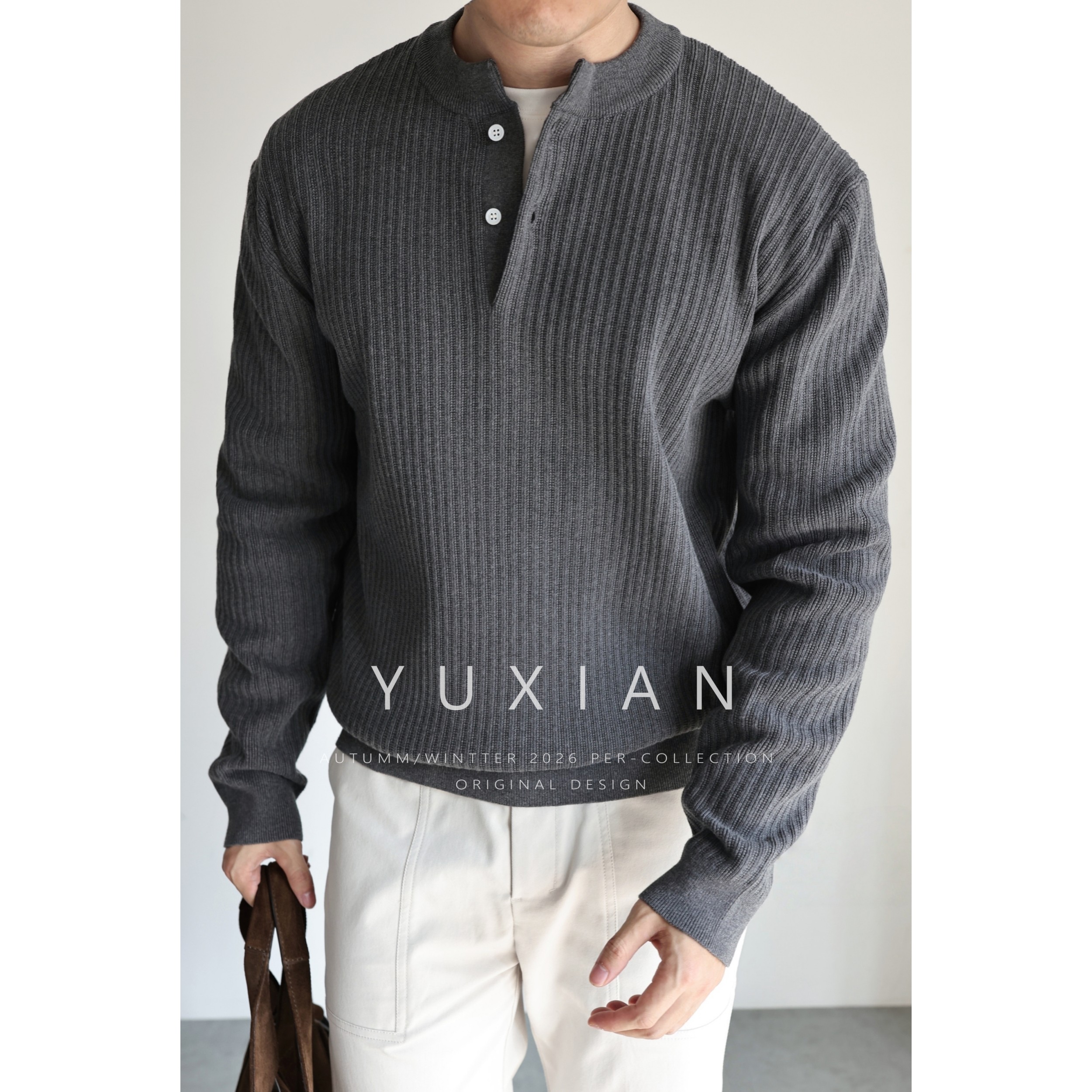 【Double strand strong twist cotton】Autumn and winter American pit strip pure cotton henry collar retro casual business men's versatile sweater
