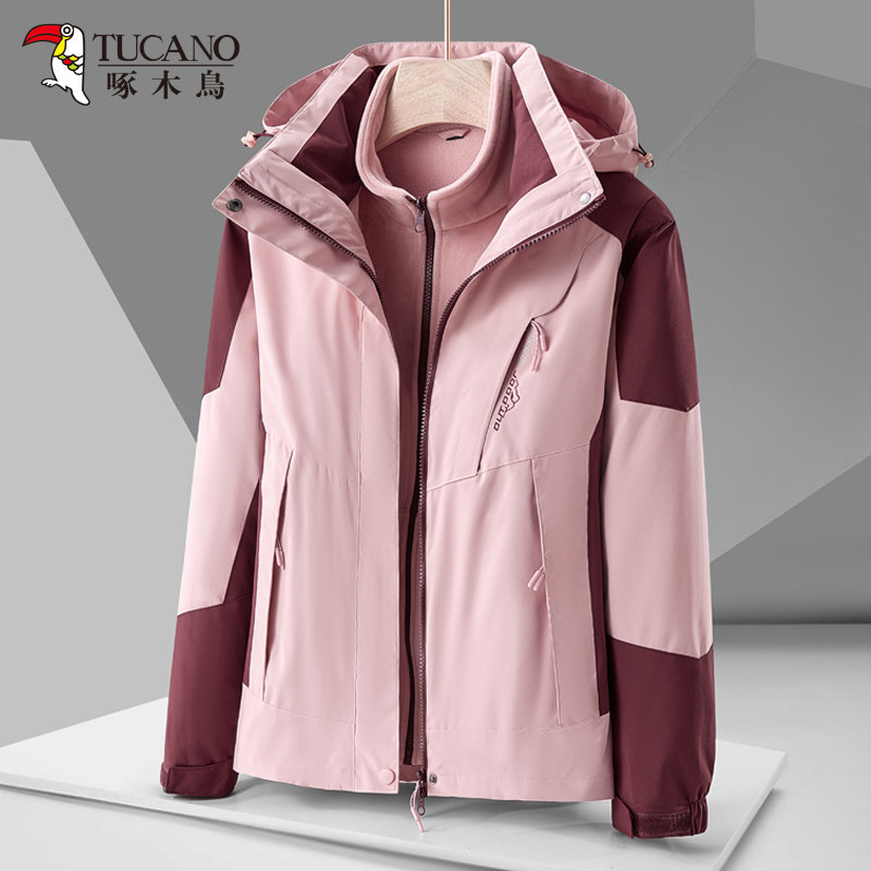 Woodpecker Trendy Jacket Women's 2025 New 3-in-1 Detachable Men's Spring, Autumn and Winter Windproof and Waterproof Jacket