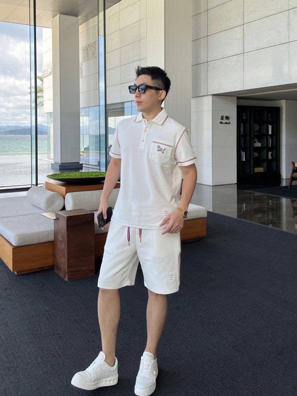 [Tom Suit] 25 summer pearl cotton puppy embroidery refreshing men's old money versatile short-sleeved shorts suit trend