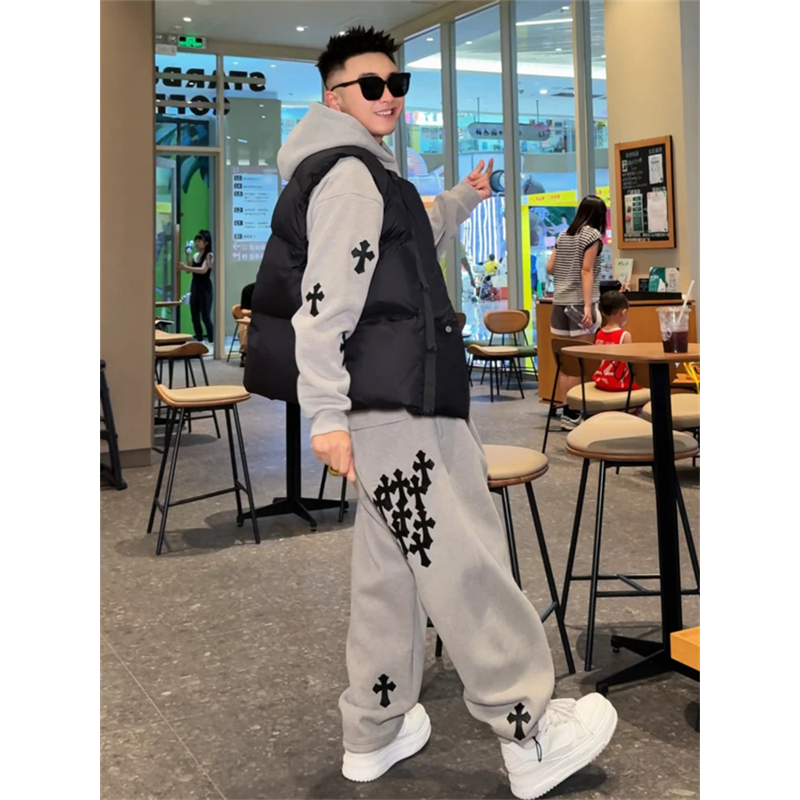 Light luxury American high street cross flower design casual sports suit 2025 autumn and winter hooded sweatshirt sweatpants two-piece set
