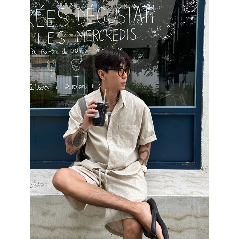 Summer fashion suit 2024 new niche textured loose casual shirt men's solid color simple and high-end