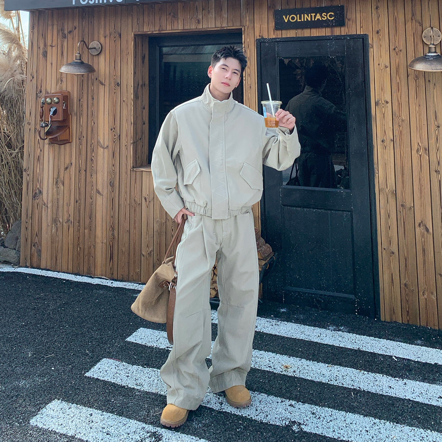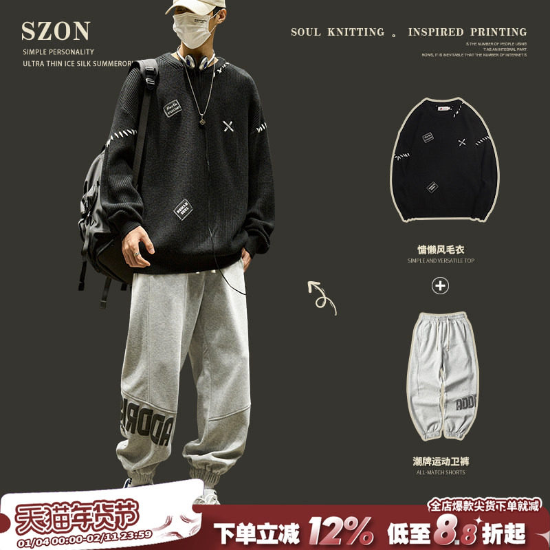 Suit men's autumn/winter 2025 new loose and lazy style wears a full set of crew neck sweaters with heavy sweaters