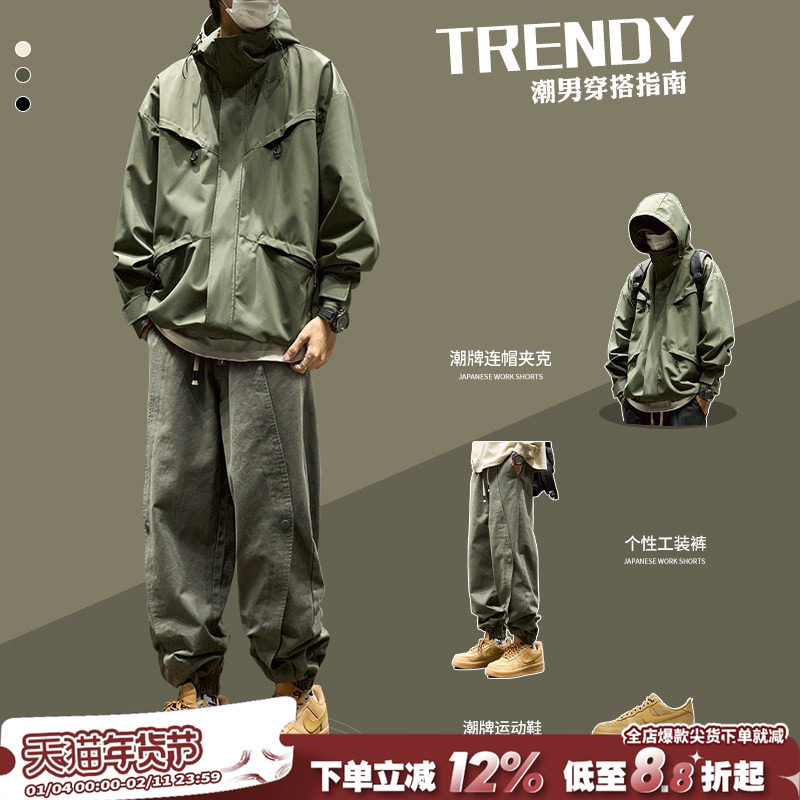 Set men's autumn and winter American casual outdoor wear set of 2025 new jacket with functional cargo pants