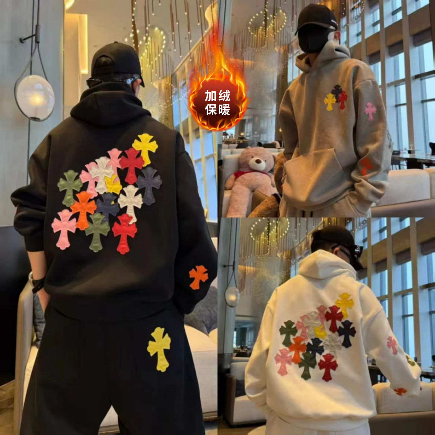 OOTD boys are cool and handsome, wearing a complete set of casual sports suits, autumn and winter heavy cardigans, sweatshirts, sweatshirts, and sweatpants