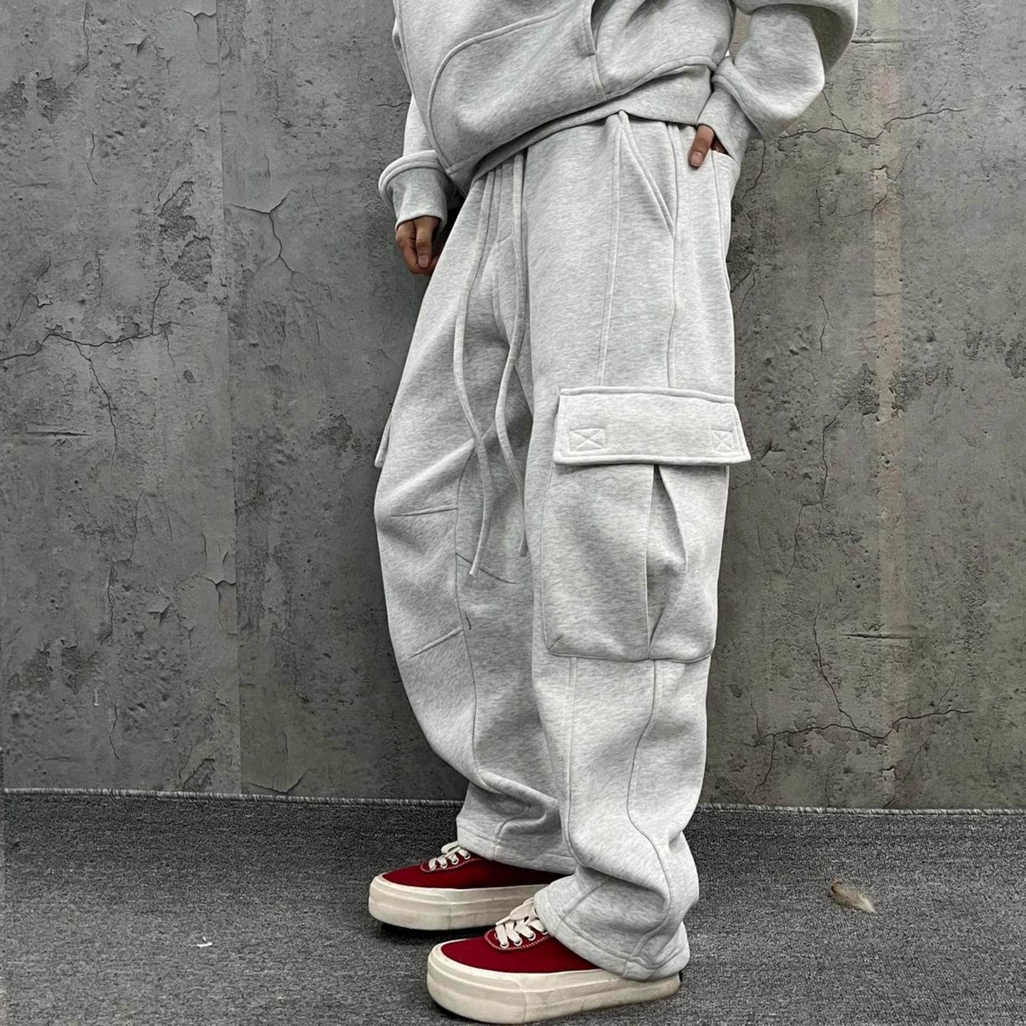 Workwear style sweatshirt set men's winter multi-pocket fashion versatile casual trousers plush couple set of the same style