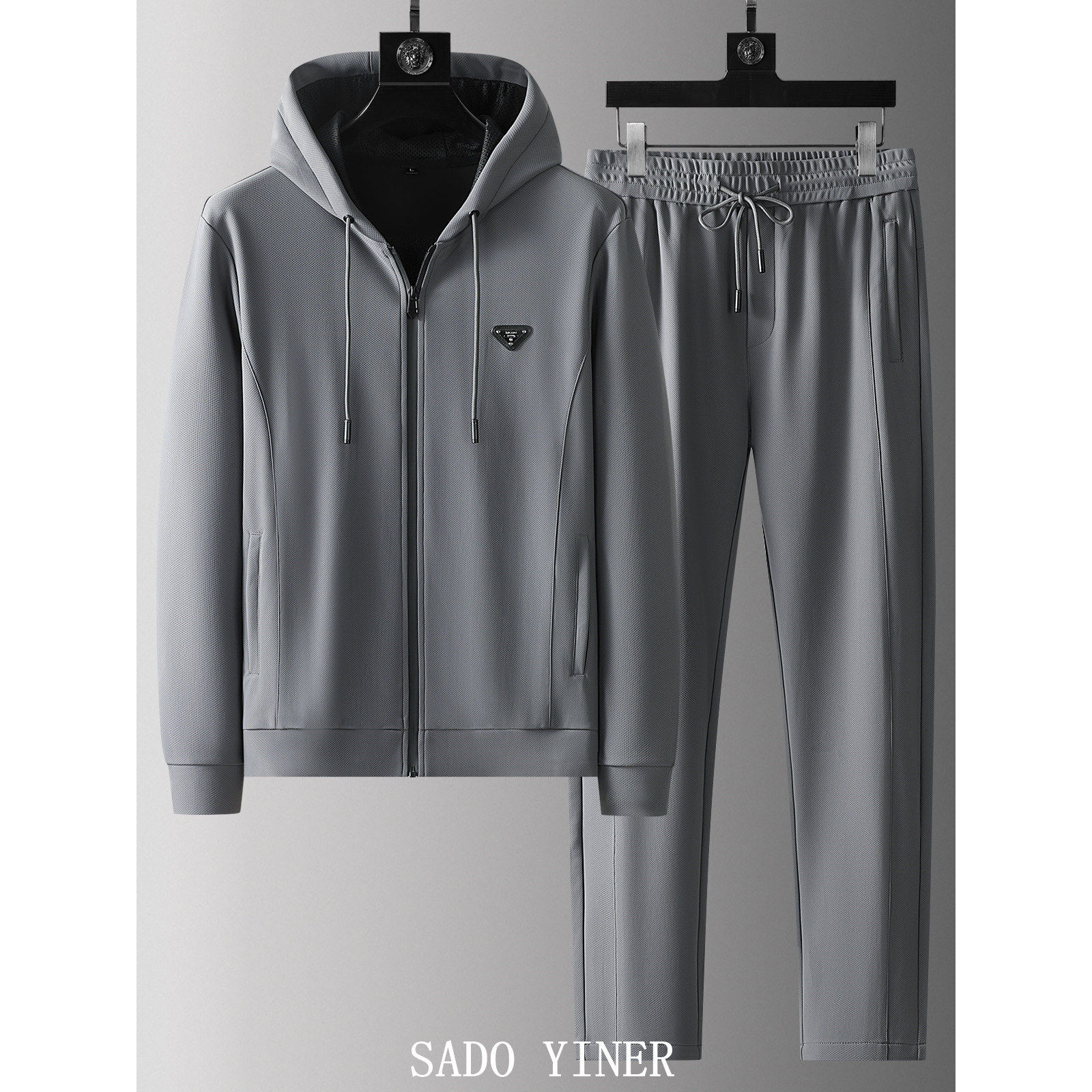 SADO YINER Spring and Autumn New High-end Silky Stretch Jacket Two-Piece Cardigan Men's Hooded Casual Suit