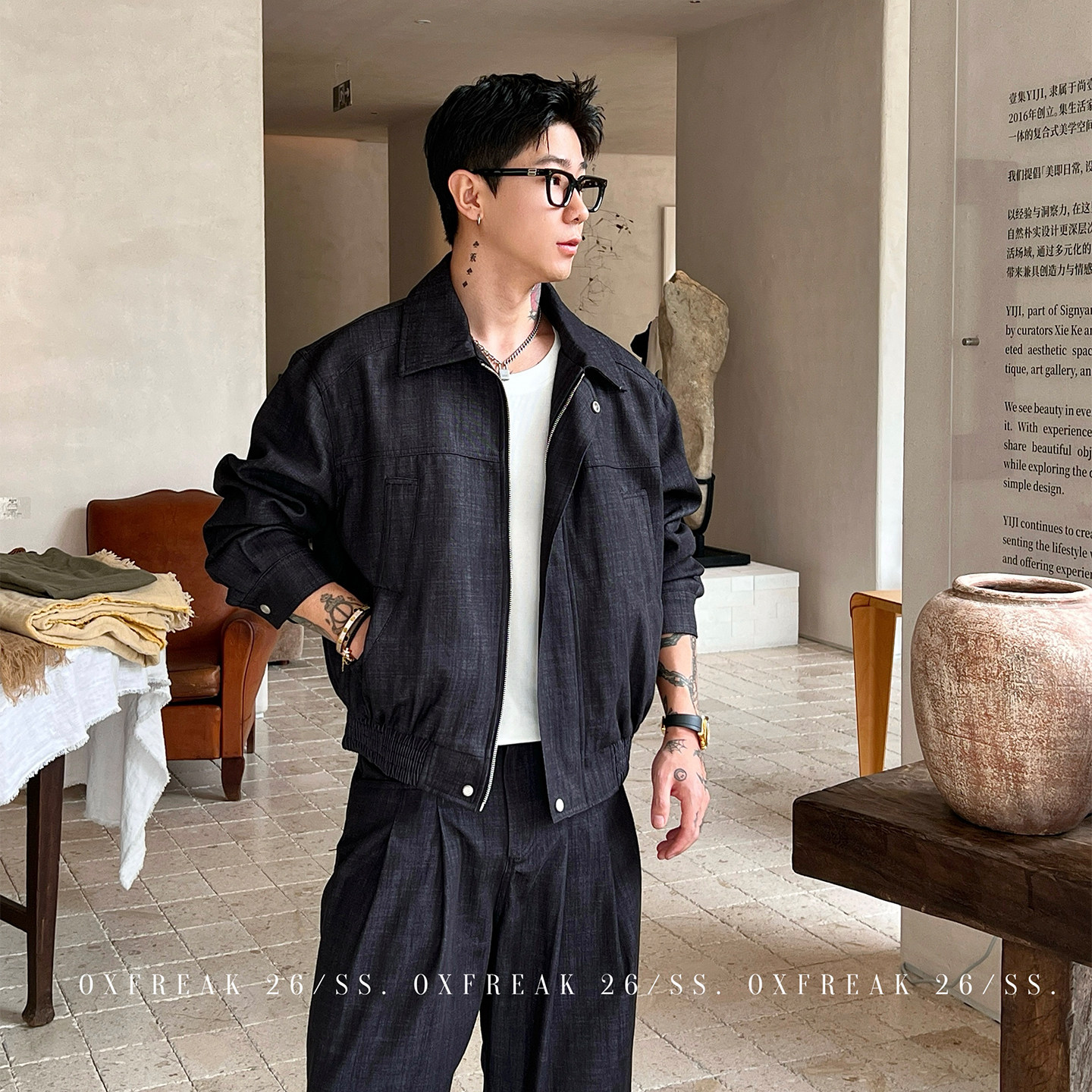 OXFREAK's "Urban Commuting" Old Money Style Suit Men's Flight Jacket Straight Loose A-Line Slacks Set