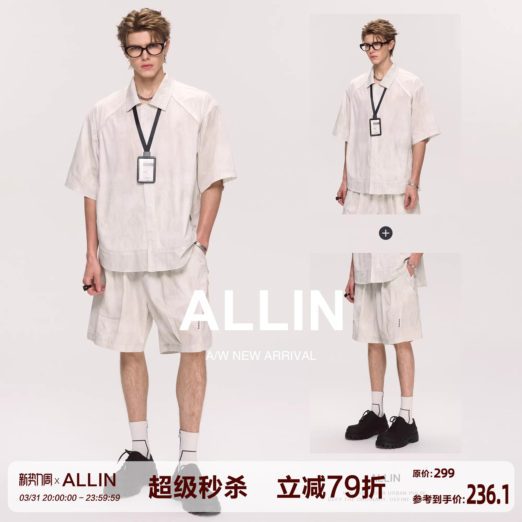 ALLIN Trendy Brand Lapel Short Sleeve Shirt Casual Shorts Two-Piece Men's Summer American High-End Light Luxury Suit