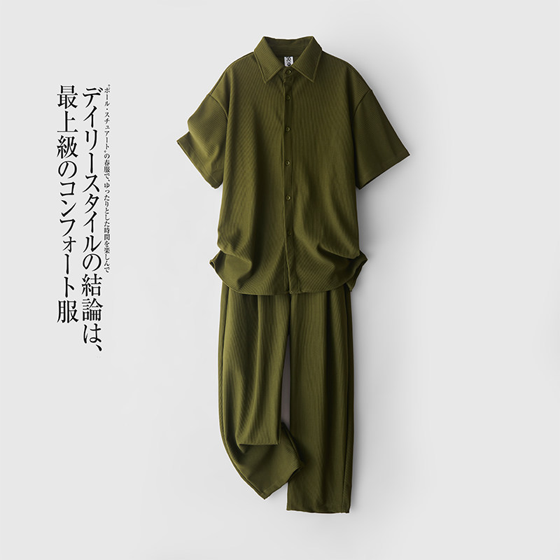 [Japanese texture] old money new fashion suit men's loose shirt short-sleeved casual trousers two-piece set