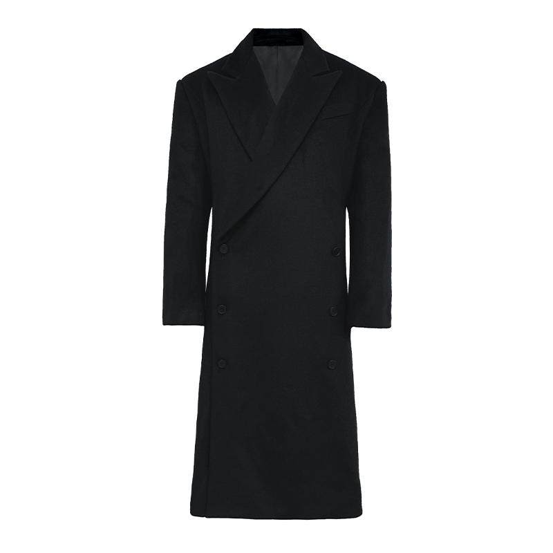 FRKM SCD 25AW Double Lace-up Large Lapel Wool Coat Thickened Loose Long Woolen Jacket Men