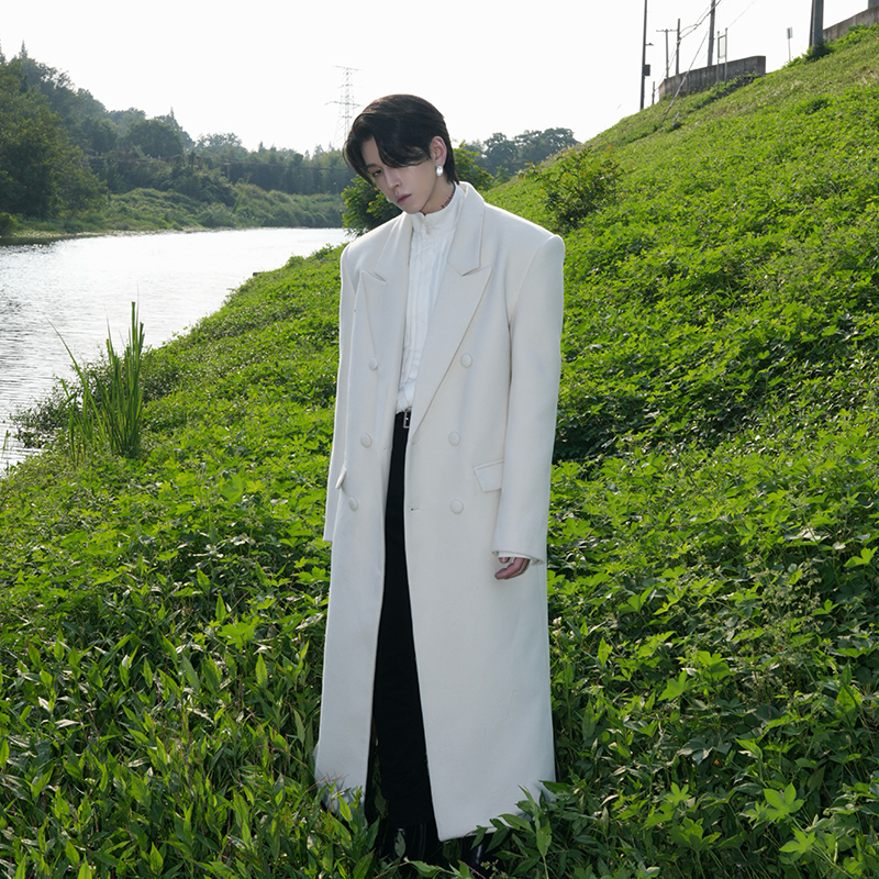 CulturE niche metal airplane button-up collar silhouette woolen coat heavy long over the knee woolen coat for men
