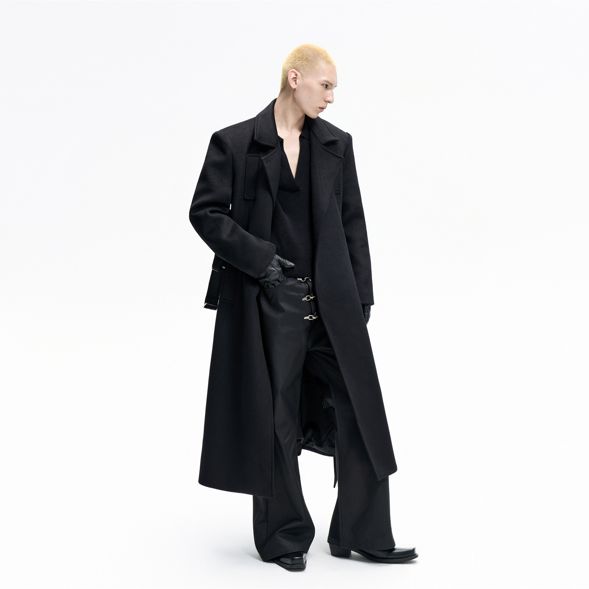JCAESAR KILLER COAT Long killer coat with shoulder pads in a loose-leaf silhouette with 70% Australian wool