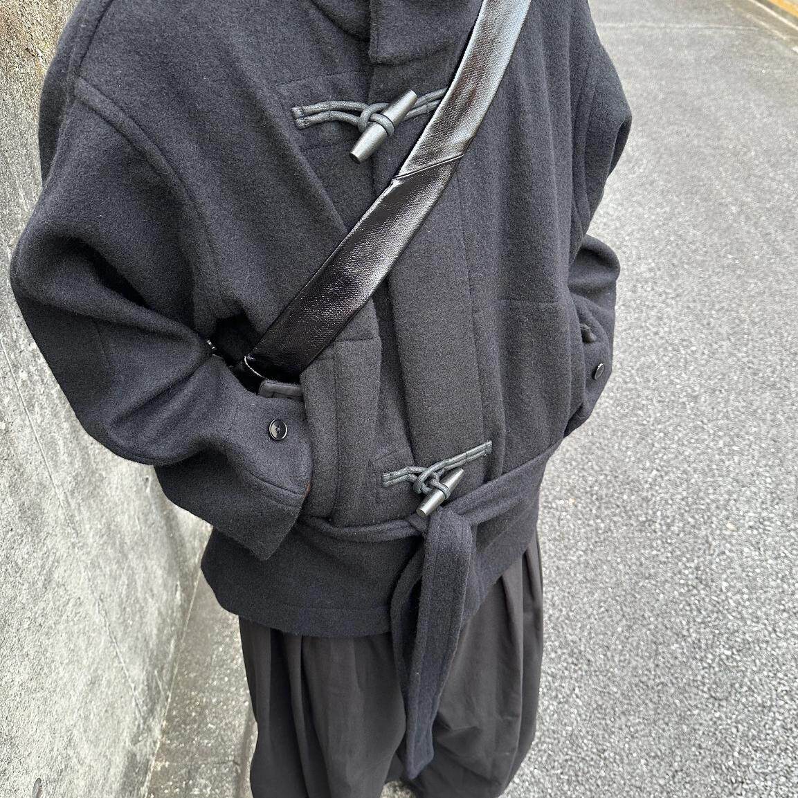 HAYOYUU.100 Australian wool licorice green duffle coat / minimalist silhouette / sinew